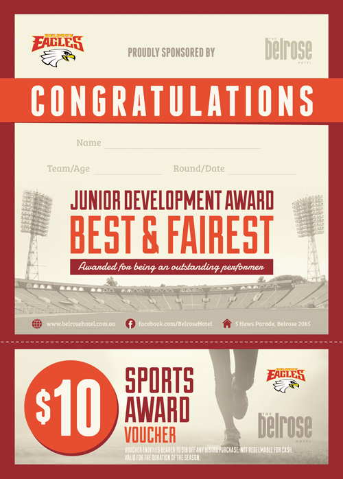 Per week for the duration of the clubs sporting calendar. You will need to add a value to these vouchers; ideally this will cover the cost of the winners ‘kids meal’. For Example $10 Sports Award Voucher.