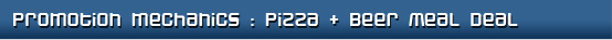 The Pizza and Beer deal offers a quick and easy yet tasty meal offer for patrons. This promotion is ideal for encouraging groups of friends to your hotel and works well when used in conjunction with a sporting event, trivia or any activity which encourages group participation.