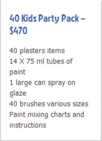 Kits are available from http://plasterpainting.com/party-in-a-box/ with all equipment as shown in the image.