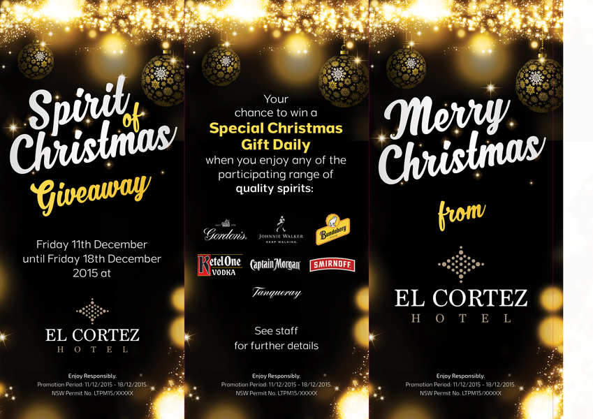 DETAILS: Your venue will have the opportunity to run a Diageo-funded “Spirit of Christmas Promotion” which is designed to create buzz and activity in your venue daily in the lead up to Christmas. With a similar mechanic to the previous “12 Days of Xmas” promotion run in the past, customers purchase a participating beverage to go into the draw to win nightly prizes. The prizes are great gifts and perfect for customers to keep for themselves or re gift for family and friends.